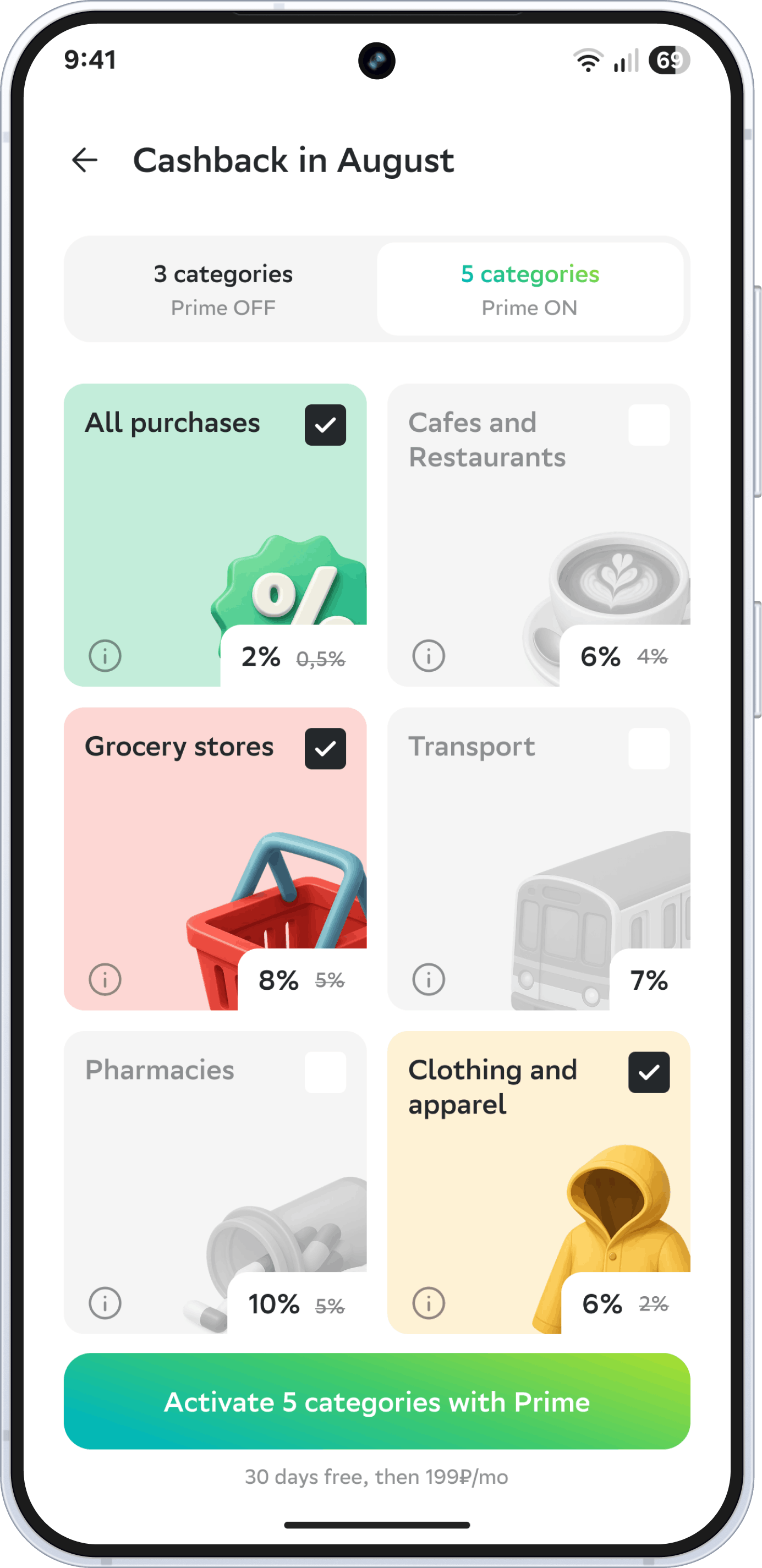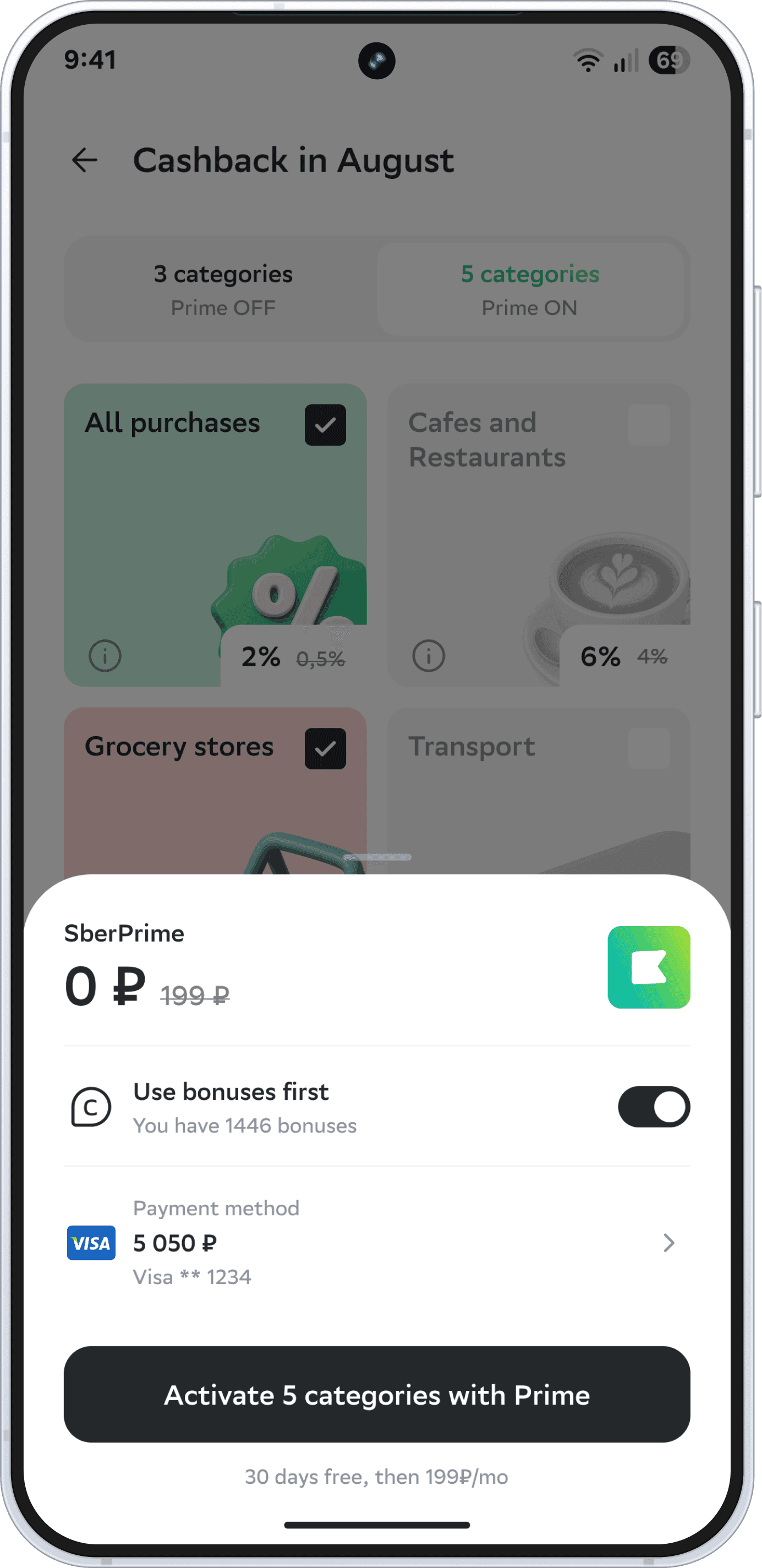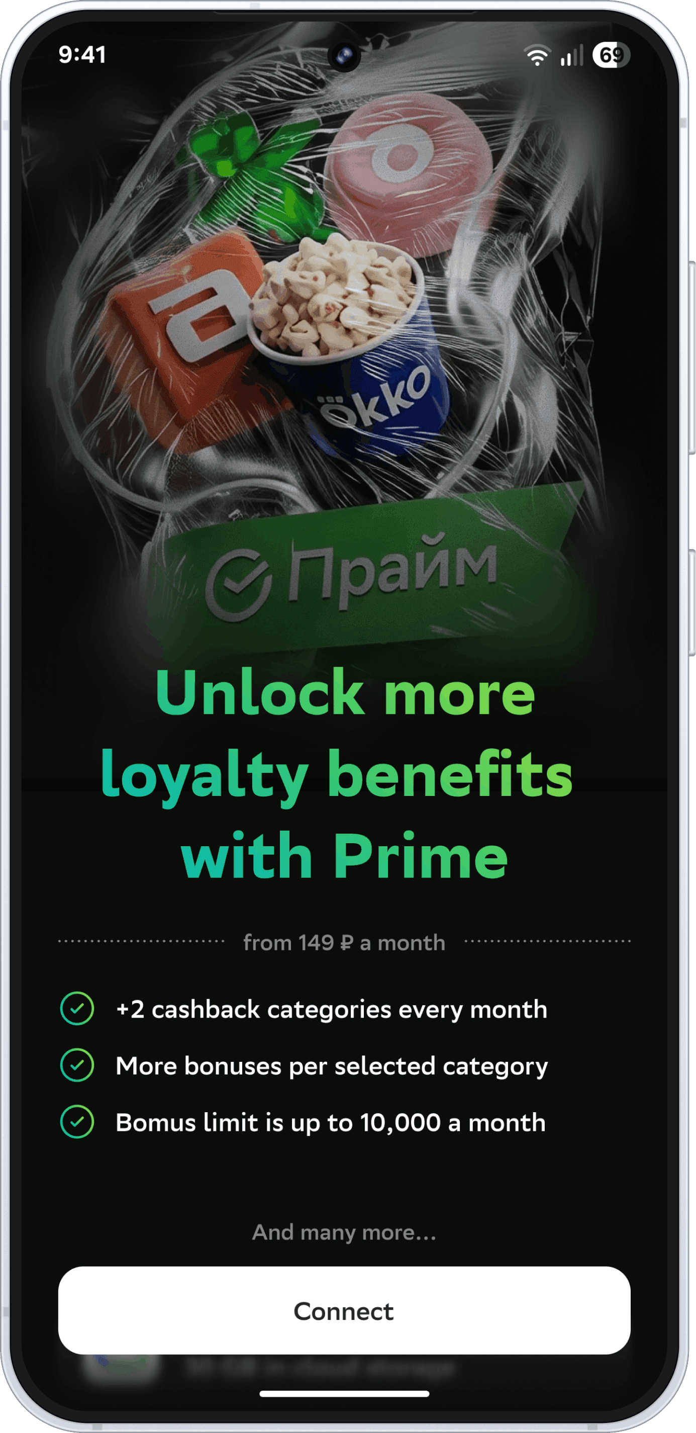 Redesigned the cashback activation experience for one of the largest loyalty programs in Russia, serving 40M monthly active users, while improving task efficiency by 35% and increasing subscription value comprehension from 20% to 80%