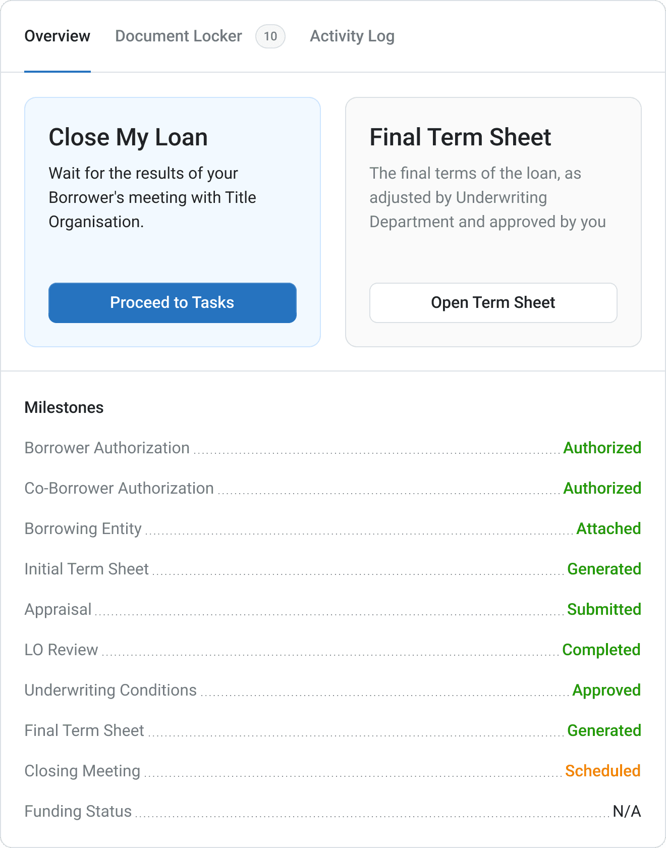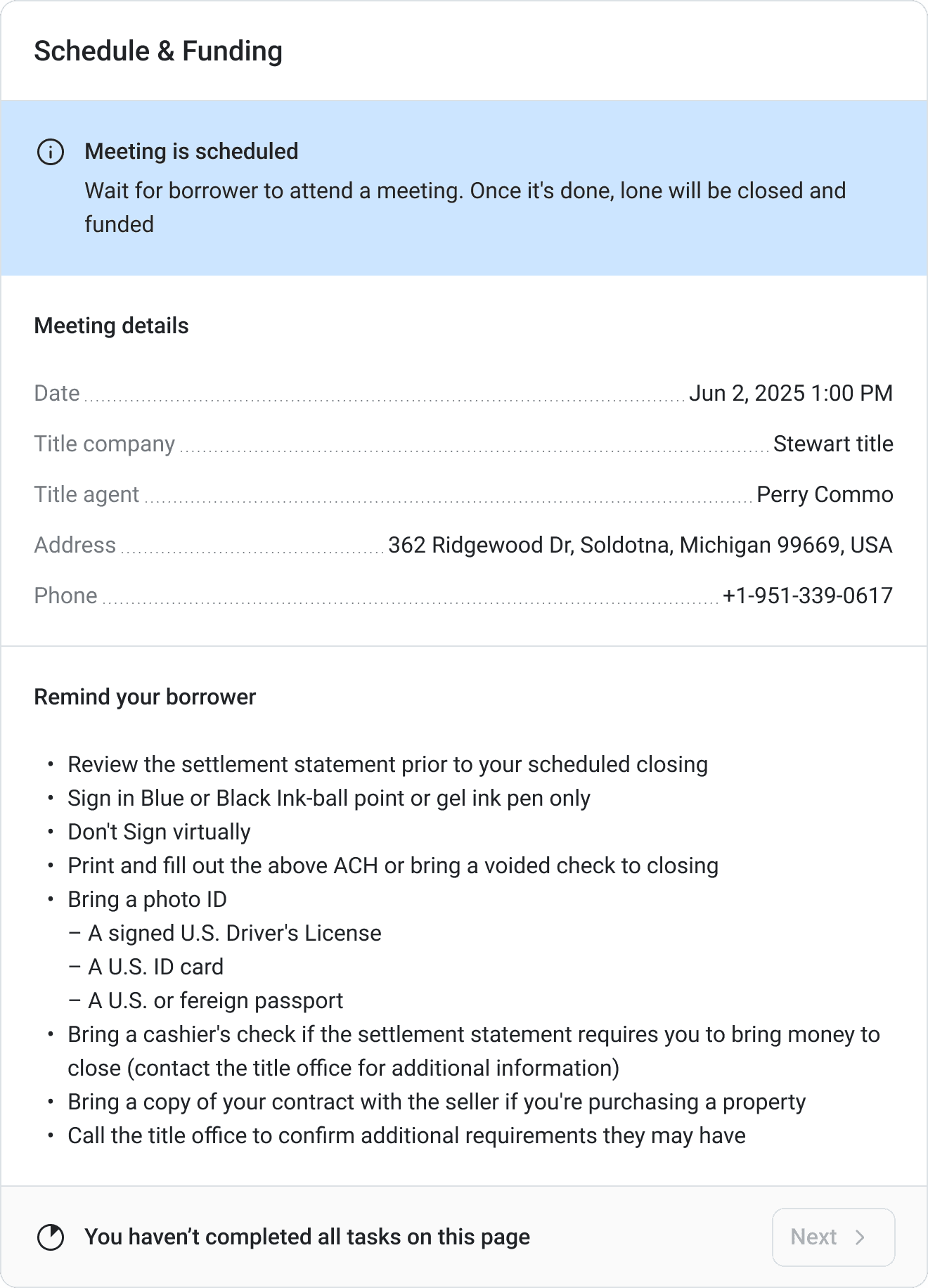 The Loan Page featured a dynamic progress tracker. Instead of a daunting list of 50 tasks, investors only saw the immediate next steps required to move forward. It clearly displayed completed stages, current status, and upcoming milestones.