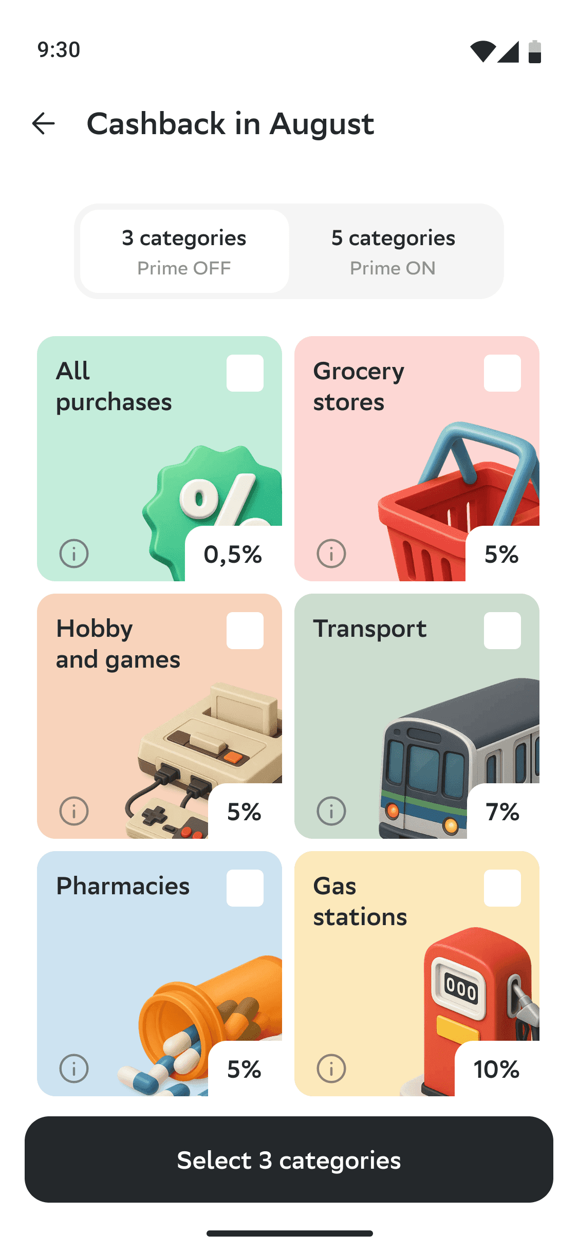 2. Cashback Categories Selection
